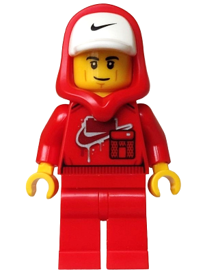 Tile, Round 6 x 6 with Dark Blue NIKE Swoosh Logo, 1 x 3 Brick and Corner Lines with Spots on Yellowish Green Background Pattern |