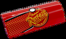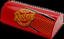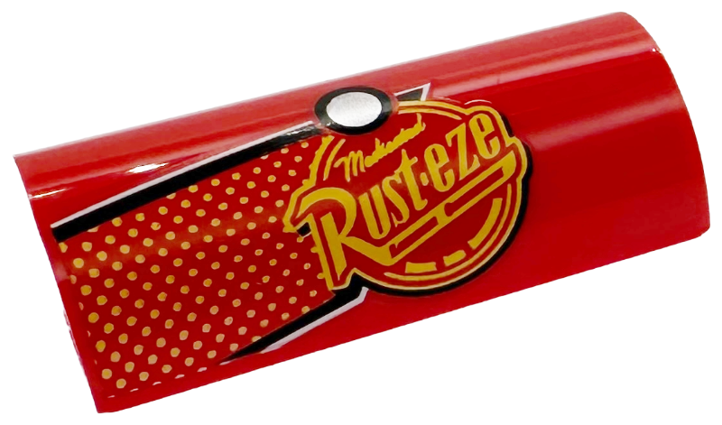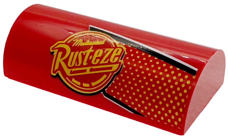 Slope, Curved 2 x 4 Double with Groove with Bright Light Orange 'Rust-eze' Logo, Dots, Black and White Stripes and Silver Fuel Filler Cap Pattern Model Left Side |