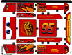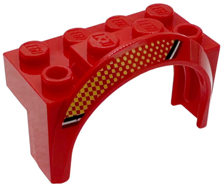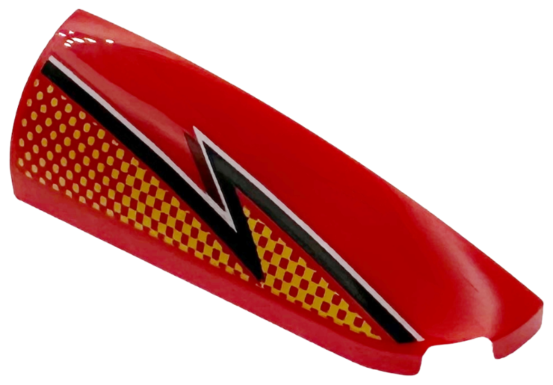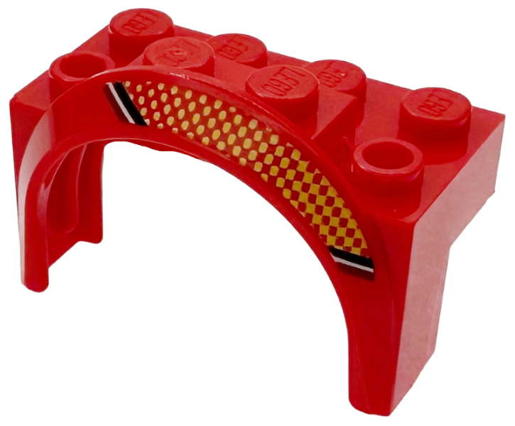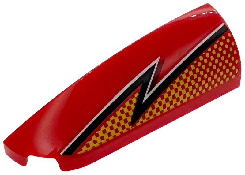 Vehicle, Mudguard 4 x 2 1/2 x 2 with Arch Round with Black, White and Dark Red Stripes, Bright Light Orange Dots and Checkered Pattern Model Right Side |