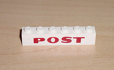 3009pb033 | Brick 1 x 6 with Red 'POST', Horn and Envelope Pattern | 4 | White | Non | Oui | Non | 1 |