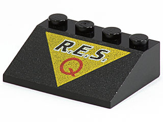 Slope 33 3 x 4 with 'R.E.S.' and Red Capital Letter Q on Yellow Triangle Pattern |