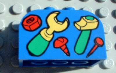 Slope, Curved 4 x 2 x 2 Double with 4 Studs with Tools Pattern |