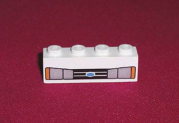 Brick 1 x 4 with Silver Car Headlights, Orange Signal Lights, Black Grille with Blue Oval Pattern |