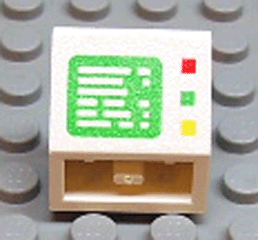Slope, Inverted 45 2 x 2 with Flat Bottom Pin with Green Computer Screen on White Background, Red, Green, and Yellow Buttons on Right Side Pattern |