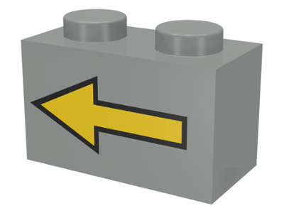 Brick 1 x 2 with Yellow Left Arrow with Black Border Pattern |