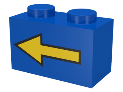 Brick 1 x 2 with Yellow Left Arrow with Black Border Pattern |