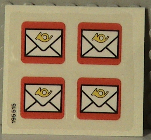 Tile 1 x 2 with Blue Lines and Red Square Pattern (Mail Envelope with Stamp) |