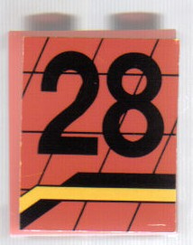 Slope 33 3 x 2 with '28' and Black and Yellow Stripes Pattern |