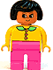 Duplo, Brick 1 x 2 x 2 with White Doll with Blue Dress and Dark Pink Hair and Shoes Pattern |