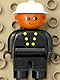 Duplo Figure, Firefighter - Male, Adult Man, Black Legs, Black Top with Buttons Pattern, White Fire Helmet, Dark Orange Head (75509) |