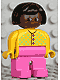 Duplo Figure - Female, Adult Woman, Dark Pink Legs, Yellow Top with Buttons and V Stitching Pattern, Black Hair, Brown Head (75504) |