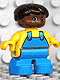 Duplo Figure - Male, Child Boy, Blue Legs, Yellow Top with Overalls Pattern, Black Hair, Brown Head (75507) |