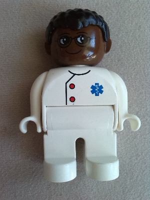 Duplo Figure, Doctor / Medic - Male, Adult Man, White Legs, White Top with Buttons and EMT Star of Life Pattern, Black Hair, Brown Head (75503) |