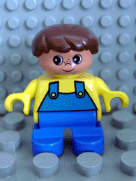 Duplo, Brick 2 x 2 x 1 1/2 Slope 45 with Blue Computer Screen and White Buttons on Yellow Background Pattern |