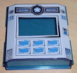 Slope 45 2 x 2 with Black Phone, Light Gray Buttons, and Minifigure on Blue Screen Pattern |