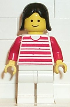 Horizontal Lines Red - Red Arms - White Legs, Black Female Hair |