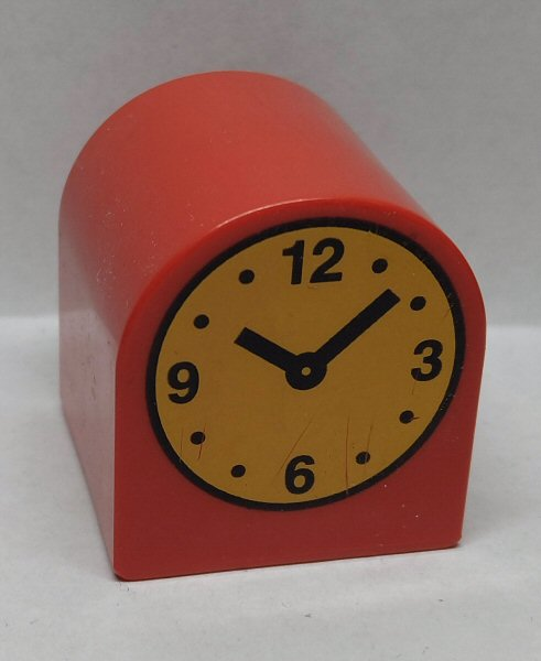 Duplo, Brick 2 x 2 x 2 Slope Curved Double with Yellow Clock Face with Black Numbers and Hands at 10:08 Pattern |