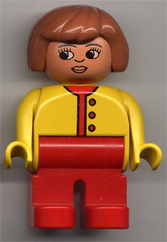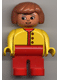 Duplo Figure, Female, Red Legs, Yellow Top Unbuttoned with Red Buttons, Fabuland Brown Hair |