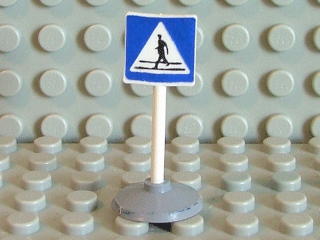 Road Sign with Post, Triangle with Man Crossing Pattern, Type 1 Base |