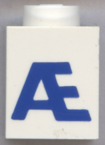 Brick 1 x 1 with Blue Capital Letter Æ Pattern (Bold Font) |