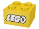 Brick 2 x 2 with Lego Logo Open O Style White with Black Outline Pattern |