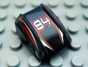 Slope, Curved 2 x 2 Lip with '84' and Orange, Red, and Silver Stripes Pattern |
