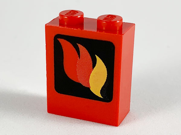 Brick 1 x 2 x 2 with Inside Axle Holder with Fire Logo Pattern |