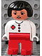 Duplo Figure, Male Fireman, Black Legs, Red Top with Two Buttons, Red Fire Helmet, Brown Head |