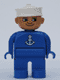 Duplo Figure, Male, Blue Legs, Blue Top with White Anchor, White Sailor Hat |