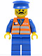 Orange Vest with Safety Stripes - Blue Legs, Moustache, Blue Hat |