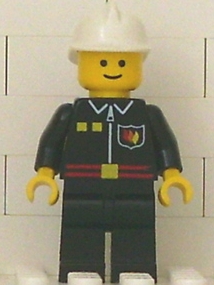 Fire - Flame Badge and 2 Buttons, Black Legs, White Fire Helmet, Black Legs, Smile |