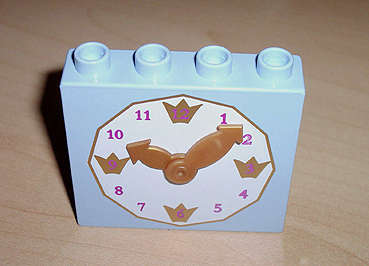 Duplo, Brick 1 x 4 x 3 with Movable Reddish Gold Clock Hands and White Clock Face with Light Purple Numbers Pattern |