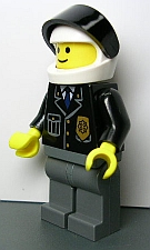 Police - City Suit with Blue Tie and Badge, Dark Bluish Gray Legs, Black Cap |