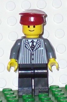 Pinstripe Suit Jacket, Black Legs, Dark Red Hat, Standard Grin |