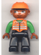 Duplo Figure Lego Ville, Male, Black Legs, Orange Vest with Green Arms, Orange Construction Helmet |