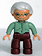 Duplo Figure Lego Ville, Female, Dark Red Legs, Sand Green Sweater, Very Light Gray Hair, Green Eyes, Glasses |