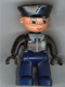 Duplo Figure Lego Ville, Male Police, Dark Blue Legs, Black Top with Badge, Black Arms, Black Hands, Black Hat |
