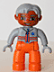 Duplo Figure Lego Ville, Male Medic, Orange Legs, Light Bluish Gray Top with Zipper and Stripes, Light Bluish Gray Hair, Light Bluish Gray Hands |
