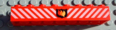 Brick 1 x 16 with Fire Logo Badge and Red Danger Stripes Pattern |
