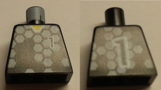 973pb0166c01 Torso Soccer Uniform Shirt with Light Gray Hexagons, Number 1, Yellow Neck Pattern / Black Arms / Black Hands 1 Black Non Non Non