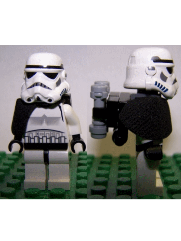 Sandtrooper - Black Pauldron (Solid), Survival Backpack, No Dirt Stains, Helmet with Dotted Mouth Pattern and Solid Black Head |
