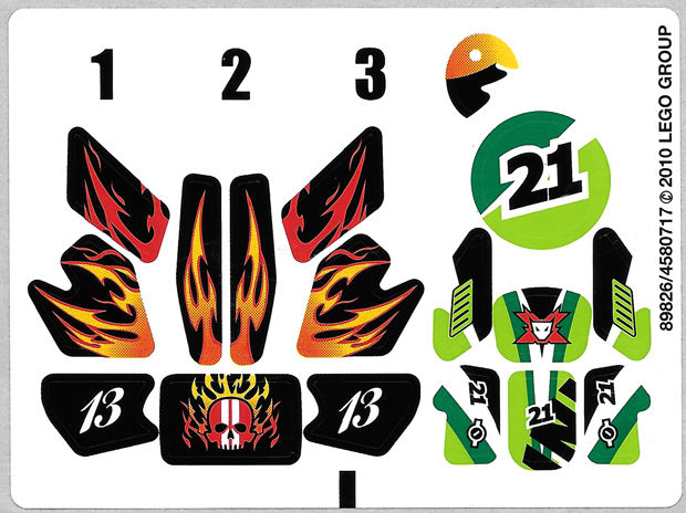 Motorcycle City with Black Chassis, Light Bluish Gray Wheels, and Fairing with Red and Yellow Flames and White '13' Pattern (Stickers) - Set 8896 |