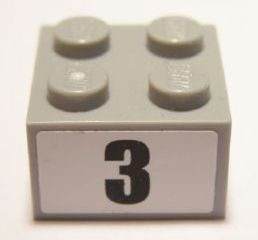 Brick 2 x 2 with Black Number 3 Narrow Bold Font Pattern (Sticker) - Set 8896 |