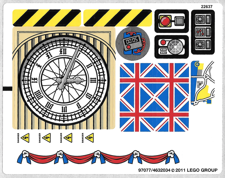 Tile 1 x 4 with Black and Yellow Danger Stripes, Silver Tow Rings and 'A-113' (Yellow Corners) Pattern |