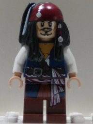 Minifigure, Head Dual Sided PotC Jack Sparrow Black Moustache and Goatee, Cheek Lines, Smile / Scared Pattern |