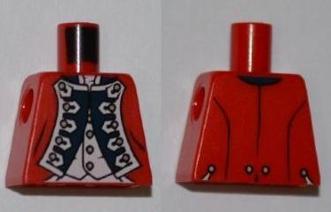 Torso PotC Officer's Uniform with White Vest and Gold Buttons Pattern (King George) / Red Arms / Light Nougat Hands |