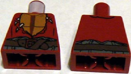 Torso PotC Bare Chest with Dark Tan and Dark Bluish Gray Belts Pattern / Reddish Brown Arms / Reddish Brown Hands |