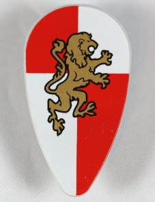 Minifigure, Shield Triangular Short with Gold Lion on Red and White Quarters Background Pattern |