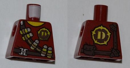 Slope, Curved 2 x 2 Lip with Rivets and Dark Red Tiger Stripes Pattern |