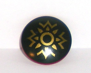 Minifigure, Shield Circular / Round Convex Face with Dark Green and Gold Rohan Pattern |